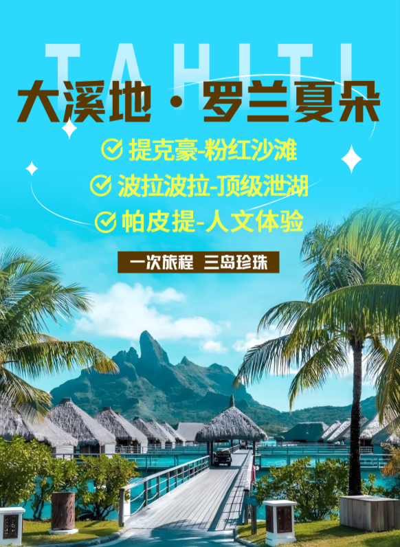 - 价格为大溪地机票+酒店行程,机票/酒店/行程一切以最后落实为准。